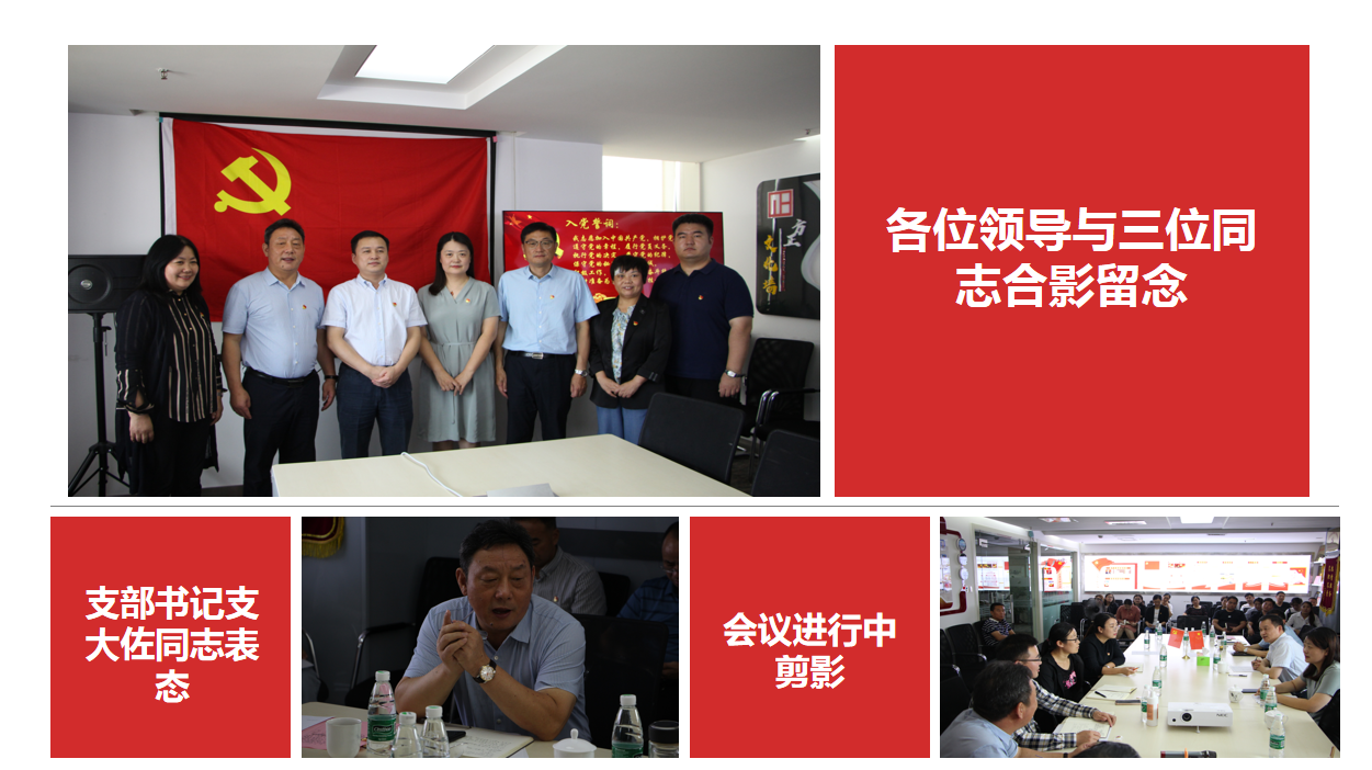 會議首先由閆洪珍、胡穎、支流三位同志從對黨的認識、入黨動機、現(xiàn)實表現(xiàn)等方面向支部大會進行匯報,支部其他黨員對三位同志的整體情況進行了討論并表決通過。支部書記支大佐同志宣布閆洪珍、支流、胡穎光榮成為中國共產(chǎn)黨預(yù)備黨員,并為其佩戴黨徽。