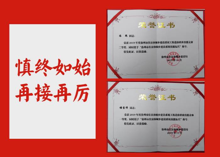 恭賀! 我所儲(chǔ)召偉、馮艷同志榮獲2019年徐州市住房城鄉(xiāng)建設(shè)系統(tǒng)工程造價(jià)職業(yè)技能競(jìng)賽“一等獎(jiǎng)”,并被授予“徐州市住房和城鄉(xiāng)建設(shè)系統(tǒng)技能標(biāo)兵”稱號(hào)